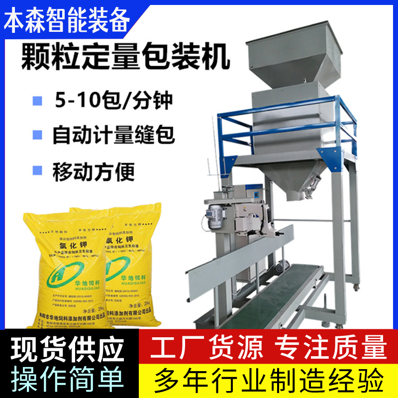 山东本森饲料人工上袋自动缝包包装机主要针对饲料行业设计,能够完成饲料的计量、填充、封口等包装流程。其中,上袋环节由人工完成,而缝包环节则实现自动化,既保留了人工操作的灵活性,又提高了包装效率。