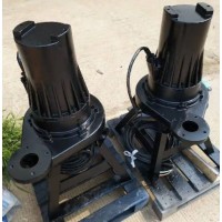 QXB型潜水离心式曝气机产品为自吸式曝气,直联式结构。旋转的叶轮产生的离心力,在叶轮的进口处形成负压吸入空气和水,利用叶轮的功能在混合室里将一定比例的气水混合,在强大的离心力下,气水二相流沿叶轮的切线方向经流道整流后,向圆周方向扩散,细碎的微小气泡充分与水相融,从而达到充氧曝气的效果。